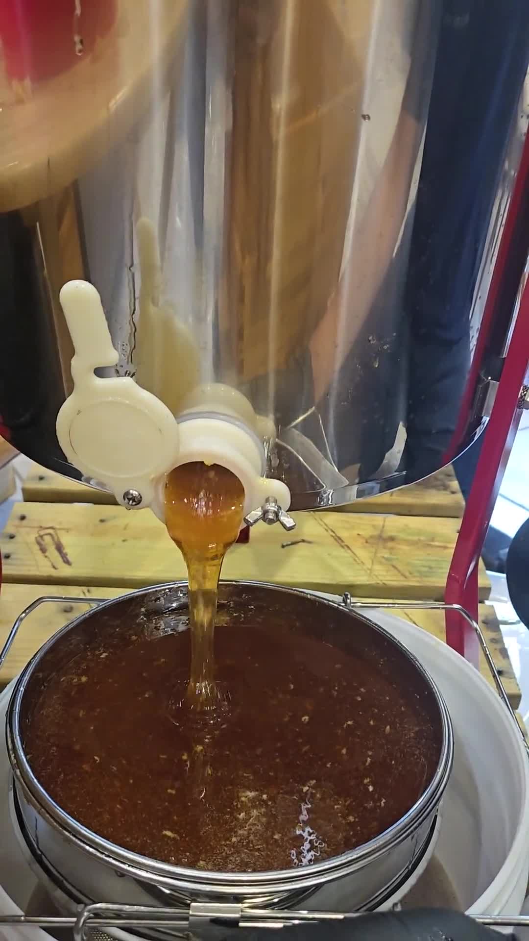 Place a coarse sieve or food-grade strainer under the extractor’s honey gate.